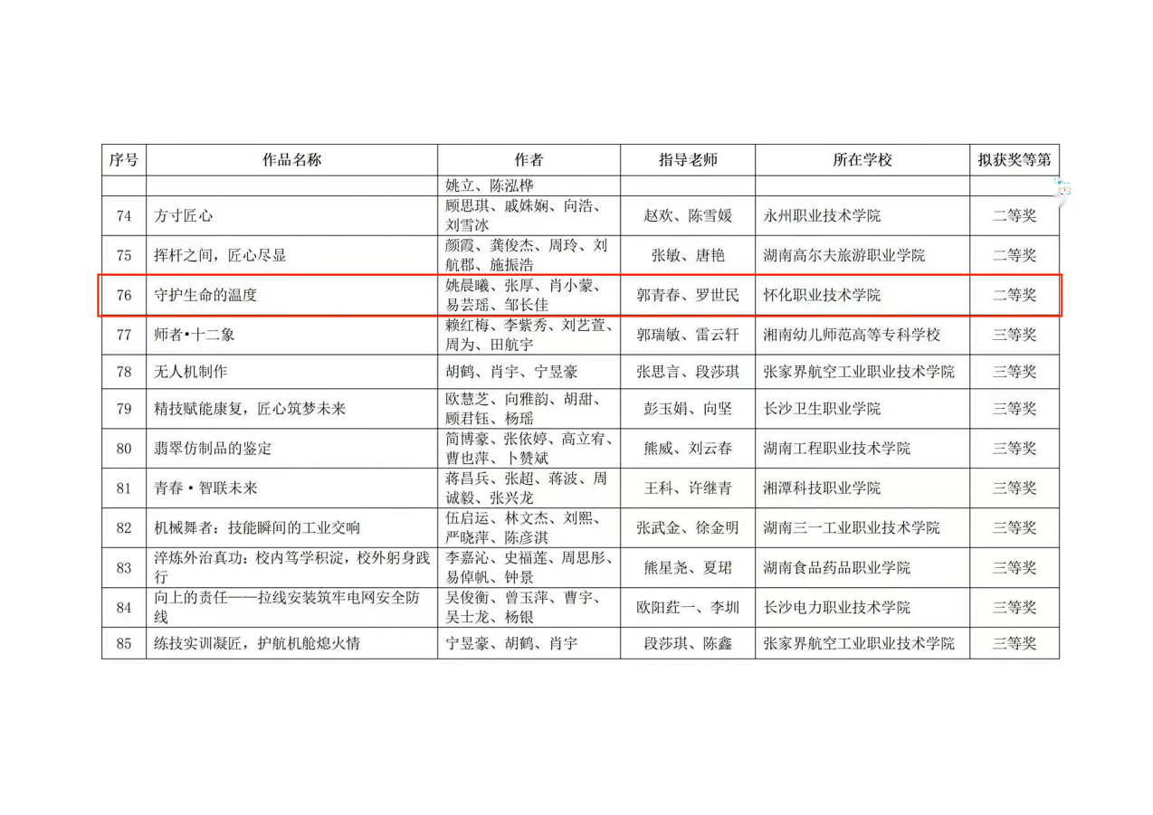 近日,2025年湖南省职业院校德育实践活动“技能瞬间”短视频评选结果正式揭晓。由我院师生共同创作的作品《守护生命的温度》在全省众多参赛作品中表现优异,荣获省级二等奖。